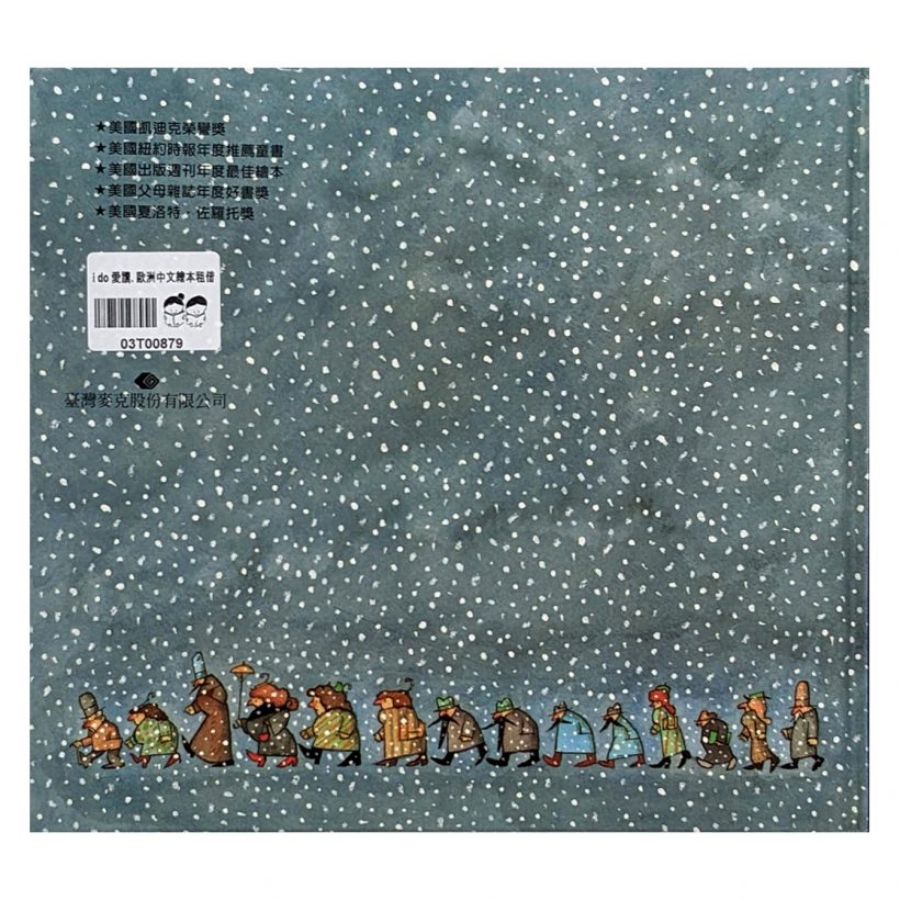 下雪了!下雪了!小男孩和鴨子最先發現下雪的跡象,可是大人們卻不予理會,最後城市慢慢飄下片片雪花,從一片雪、二片雪到好多好多白雪,終於變成白靄靄的一片,成為小孩開心的白雪世界!